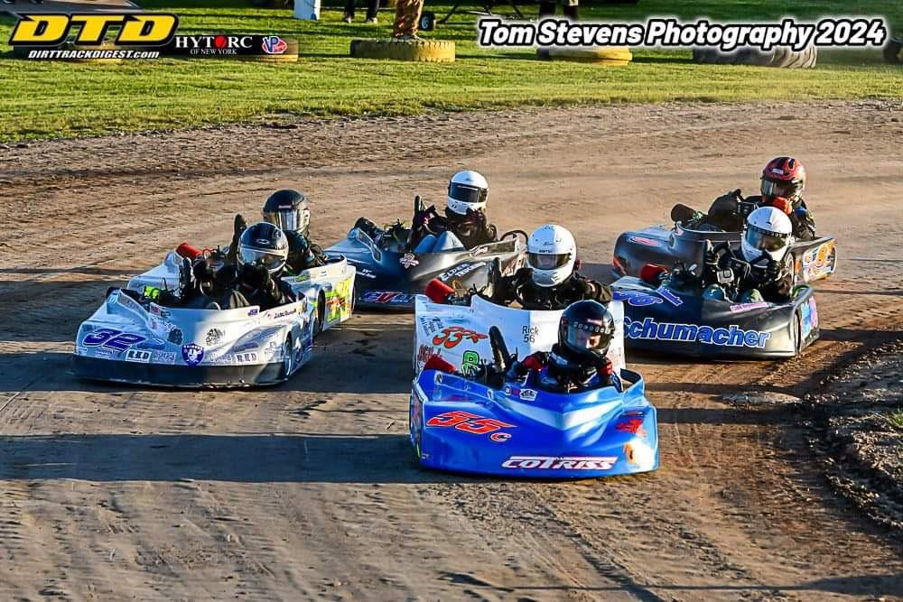 RANSOMVILLE, NY (May 30, 2024) Aideen Rusnock won the $125-to win special for the Frontier Auto Wrecking Jr 3 division on Thursday night at the Little R. Mike Seefeldt celebrated not only his birthday, but the feature win in the Mike Barry Motors Sr. Heavy division. Ben Walsh won the Fisher’s Auto Repair Senior Lites feature event. Laina Stewart won the Bud’s Apple Pie Jr 2 feature event. Ryan Barry won the Planter Box Direct Jr 1 feature event. Hendrick Dingledine, Easton Cotriss, and Lauren Strassburg picked up the victories in the Reid’s Drive-In Novice feature events. Brendan Wallace won the Mechanics Race. 105 karts signed in pitside for competition.