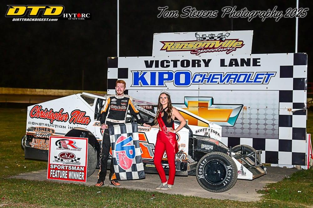 RANSOMVILLE, NY (August 22, 2025) “Money” Mat Williamson from St. Catharines, Ontario was victorious in the Krown Undercoating 358 Modifieds on Hawaiian Night presented by Firth Jewelers at the Ransomville Speedway Friday night. Cameron Tuttle from Wilson, NY won his third Stirling Lubricants DIRTcar Sportsman feature of the season. Josh Pangrazio from Oakfield, NY won his 10th KiPo Chevrolet Street Stock feature of the season. Brandon Close from Lockport, NY won his third Sunflowers of Sanborn Mini Stock feature of the season. Jocelyn Just from Ransomville, NY won the Kevin’s Carpet Cleaning Novice Sportsman.