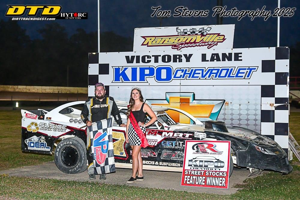 RANSOMVILLE, NY (August 8, 2025) Ridgeway, Ontario’s Gary Lindberg was back in victory lane after his third win of the season in the Krown Undercoating 358 Modifieds as Bailey Brothers Landscaping and IMA Life North America presented the racing action at the Ransomville Speedway Friday night. Derek Wagner from Middleport, NY won his second Stirling Lubricants DIRTcar Sportsman feature of the season. Brandon Sherwood from Sanborn, NY won his second KiPo Chevrolet Street Stock feature of the season. Brandon Close from Lockport, NY won his second Sunflowers of Sanborn Mini Stock feature of the season. Kyle Teeter from Lockport, NY won his second Kevin's Carpet Cleaning Novice Sportsman feature of the season.